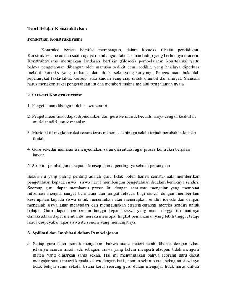 Pdf Teori Pembelajaran Teori Pembelajaran Konstruktivisme Ahmad Abrar Rangkuti Ma Academia Edu