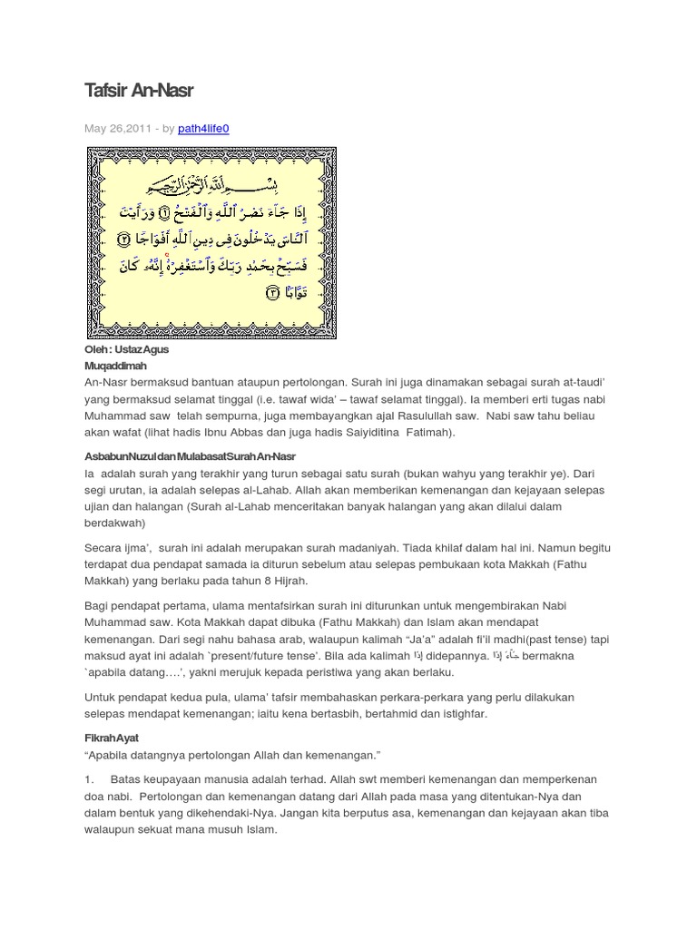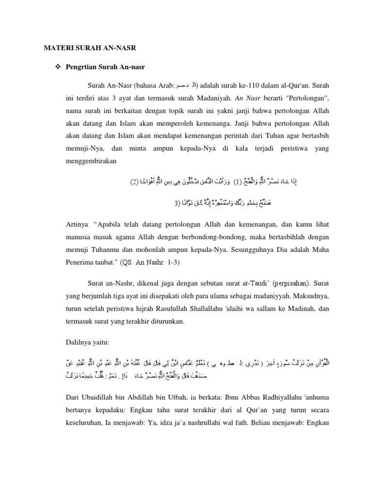 Surat An Nasr Beserta Artinya Tafsir Dan Asbabun Nuzul