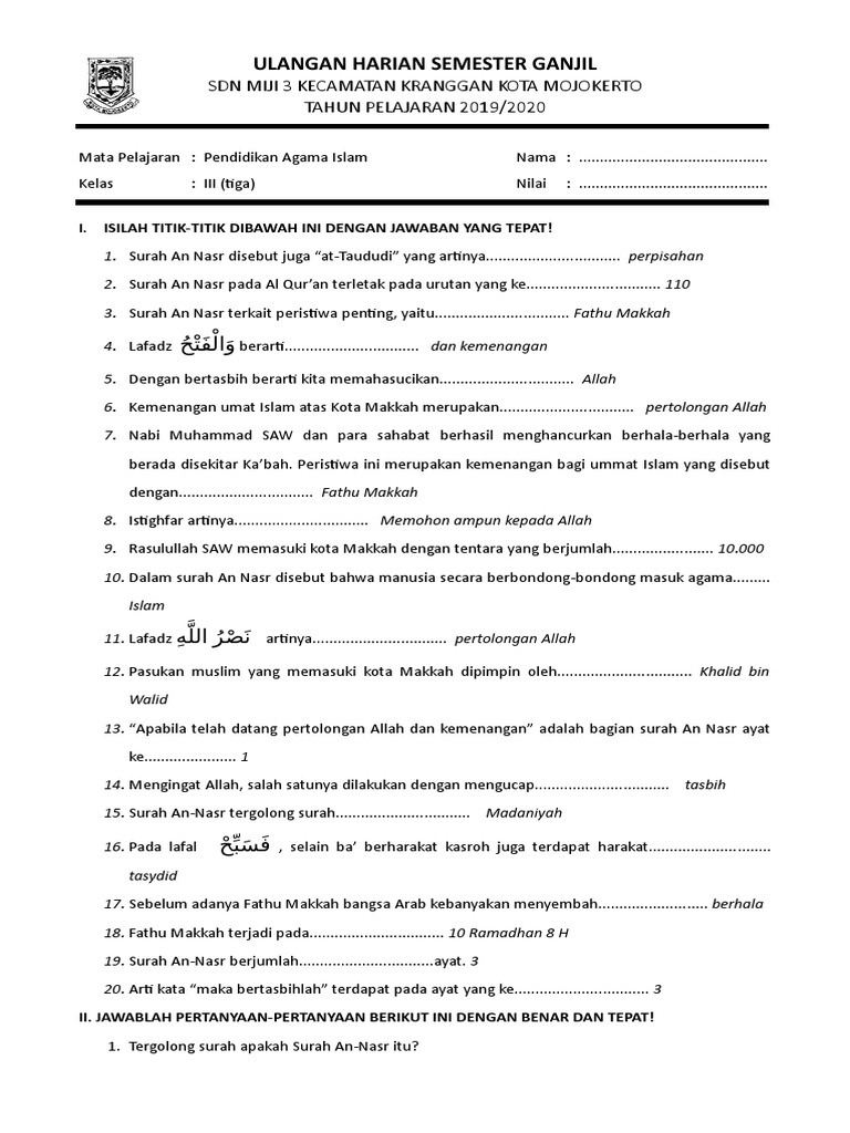Menentukan Fiil Isim Dan Huruf Pada Surat An Nasr Brainly Co Id