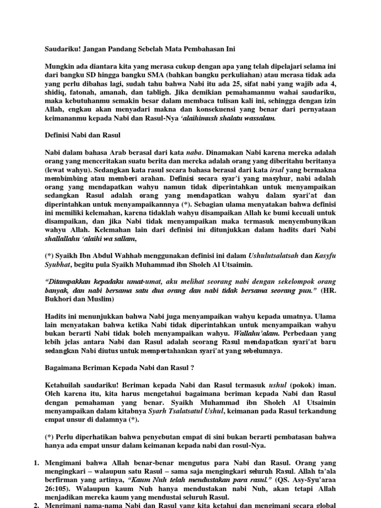 Nabi Dan Rosul Pengertian Sifat Fungsi Dan Perbedaan