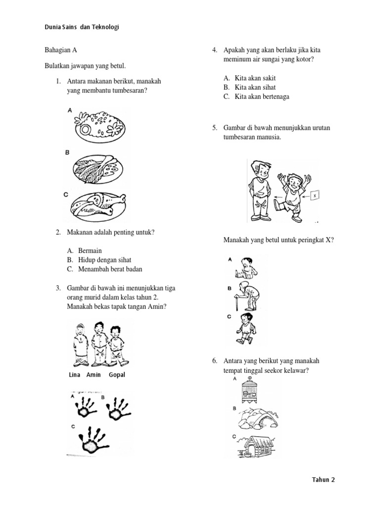 Dunia Sains Dan Teknologi Tahun 2 Ujian