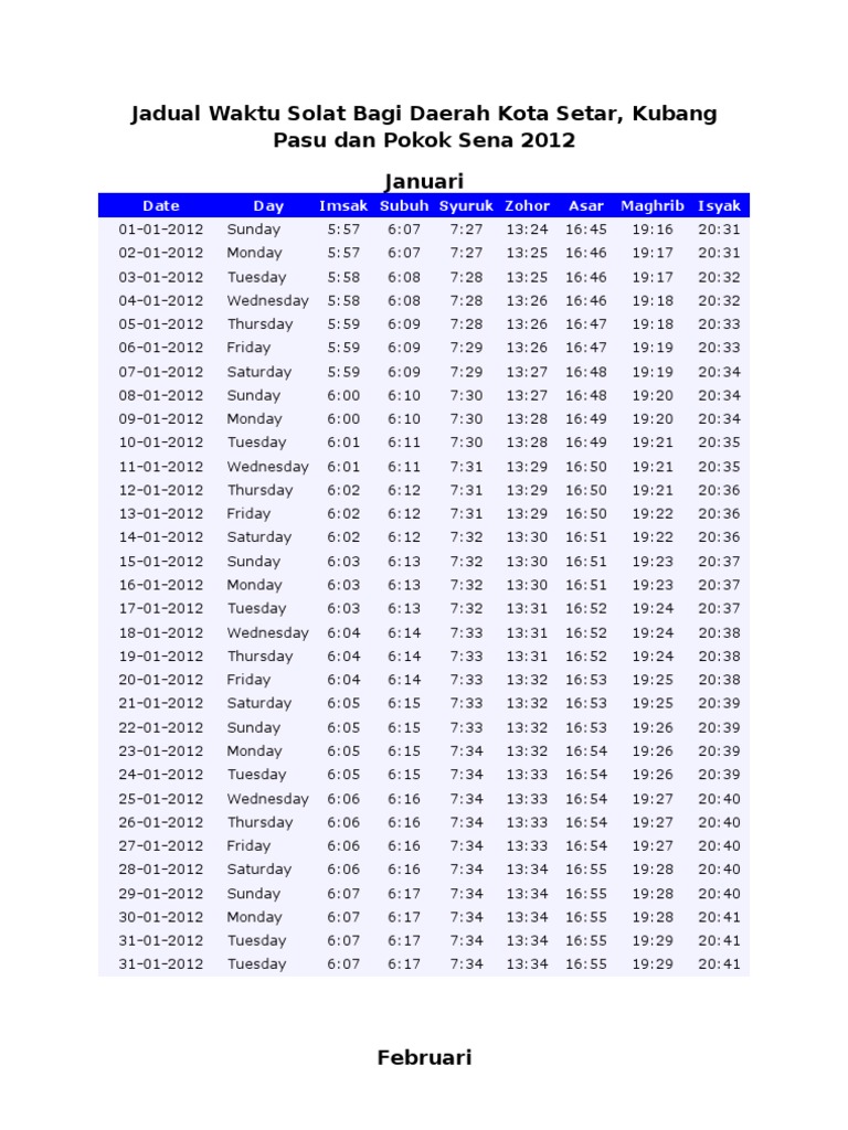 Jadual Waktu Solat Kubang Pasu Dan Kota Setar 2012