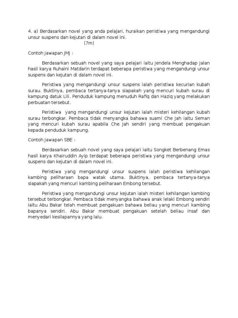 Contoh Jawapan Novel Unsur Suspens Dan Kejutan